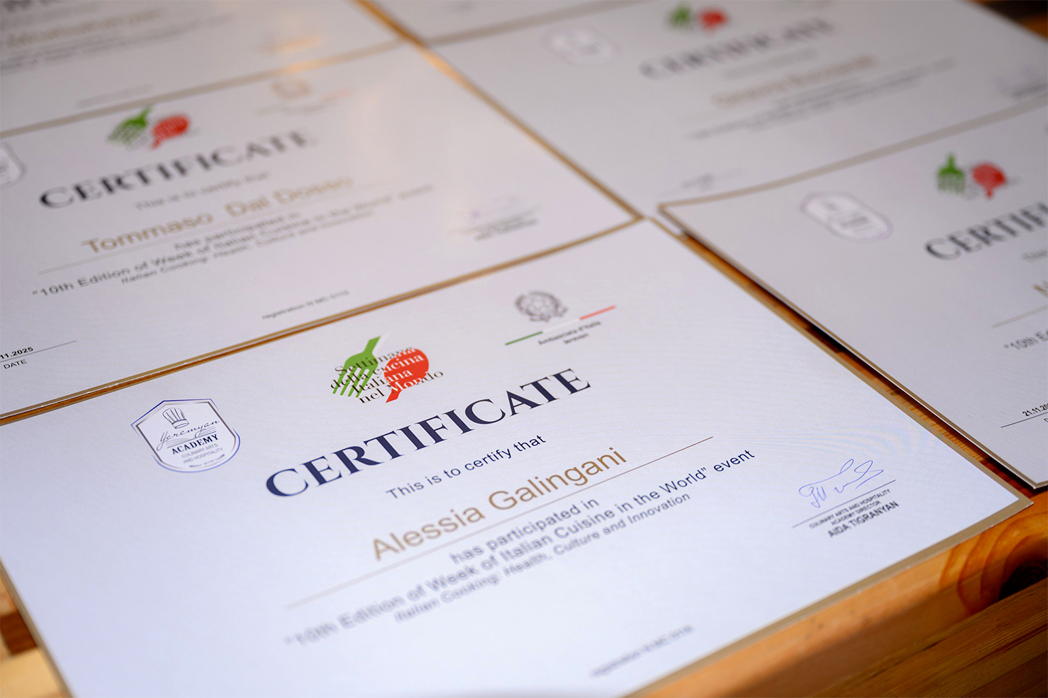 2023 թվականին «Աշխարհում իտալական խոհանոցի շաբաթ» նախաձեռնության շրջանակներում հյուրընկալեցինք Իտալիայի Վիտտորիո Վենետոյի անվան «Ալֆրեդո Բելտրամե» հյուրանոցային եւ ռեստորանային սպասարկման պետական մասնագիտական ինստիտուտի ներկայացուցիչներին, նրանց մասնակցությամբ ունեցանք վարպետաց դասեր։ Համագործակցությունը շարունակվեց, այժմ մենք ունենք կնքված հուշագիր, եւ մյուս տարի մեր Ակադեմիայի շեֆ խոհարարները լինելու են Իտալիայում, անցկացնելու են վարպետաց դասեր հայկական խոհանոցի վերաբերյալ։ Հետագայում նախատեսվում են փոխայցեր նաեւ երկու կրթական հաստատությունների ուսանողների մասնակցությամբ»,- ընդգծել է Աիդա Տիգրանյանը։