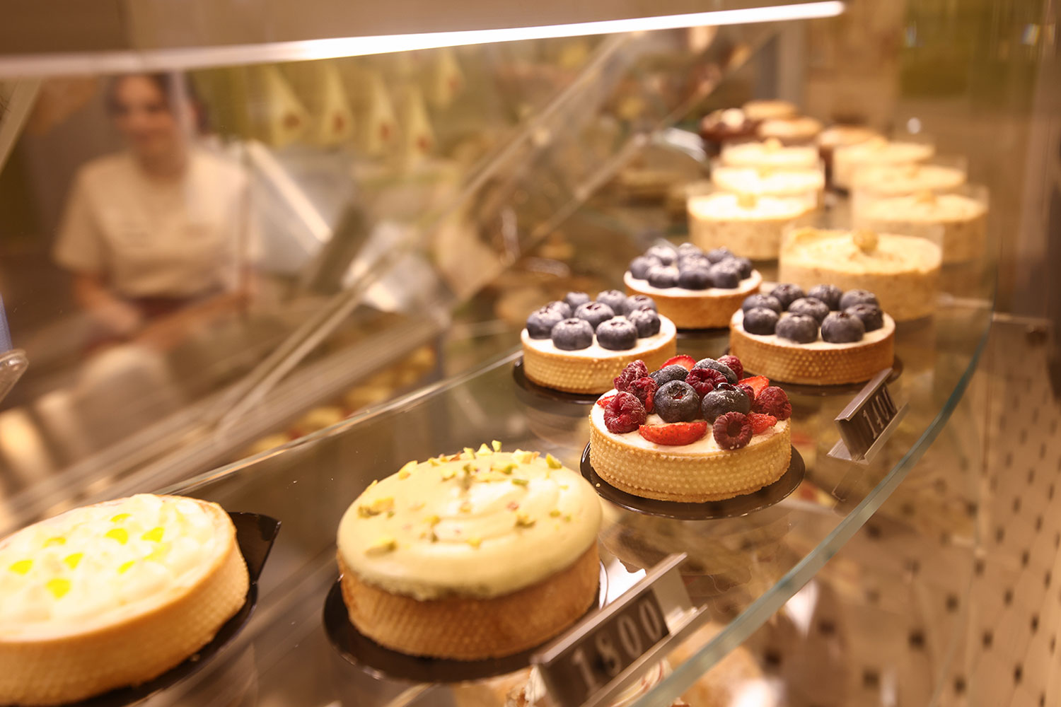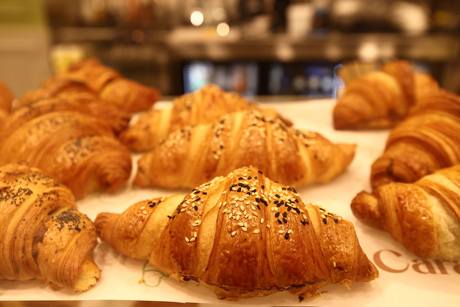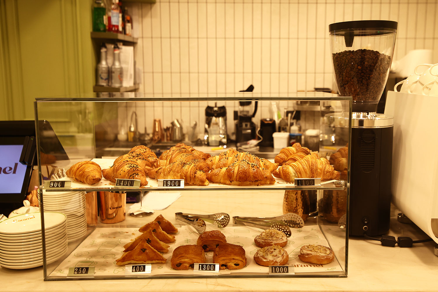 Սրահի խորքում ցուցադրվում են կրուասաններն ու խաչապուրիները՝ սկսած դասականից մինչեւ տրյուֆելով եւ պանրով տարբերակներ։ Կրուասաններն ու խաչապուրիները թխվում են հենց սրճարանում։ Խաչապուրիները կարելի է գնել ինչպես պատրաստի, այնպես էլ կիսաֆաբրիկատ տարբերակով։