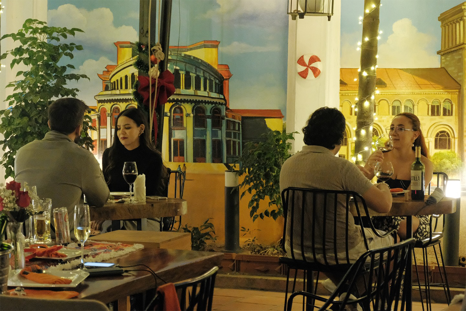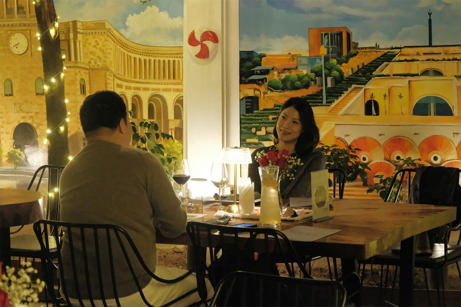 Այս խոհարարական գանձերի փողոցի մեջտեղում առանձնանում է մի վայր, որն աչքի է ընկնում նույնիսկ այս հարուստ միջավայրում։ Կարմիր սալիկներով ծածկված բաց բակը, փորագրված սյուներն ու ոճավորված որմնանկարները հեռու են այն ամենից, ինչ սովորաբար սպասում ես վիետնամական ռեստորանից։ Կորաձեւ փայտը, մեղմ նարնջագույն լուսավորությունն ու սեղանների կենտրոնում տեղադրված սփռոցները կարծես տանում են դեպի Արեւմուտք, սակայն վառ գույներն ու երկրաչափական նախշերը շփոթեցնում են։ Մթնոլորտը հանգիստ է, մարդիկ գինի են խմում, հնչում է անծանոթ երաժշտություն։