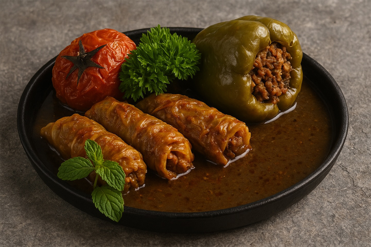 Հաջորդը տոլման էր։ Այն աղացած տավարի մսի ու բրնձի համադրություն է՝ փաթաթված հայկական խաղողի տերեւների կամ էլ բանջարեղենի մեջ: