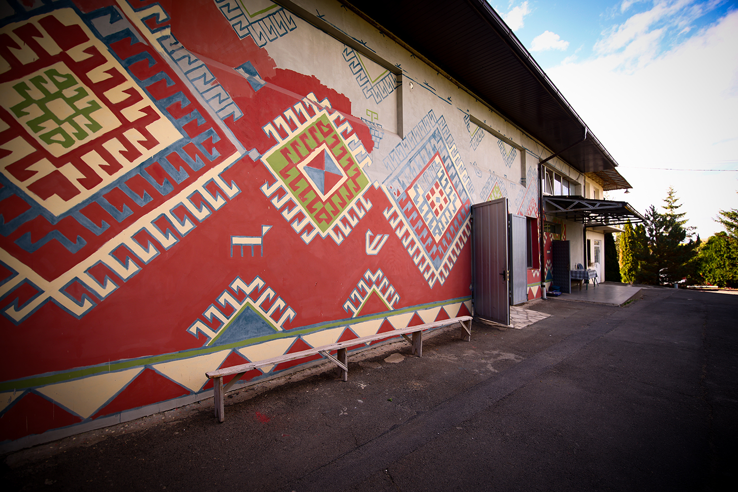 «Գյուղում մի անգամ գինու փառատոնի ժամանակ տաղավարների հատվածը ակումբի մոտ էր, որի պատը կիսակառույց էր եւ արտաքին գեղեցիկ տեսք ապահովելու համար որոշեցինք այն արցախյան Վիշապագորգի նախշերով զարդարել։ Հետո, երբ եկանք այստեղ, որոշեցի նույնը վերստեղծել այստեղ»:
